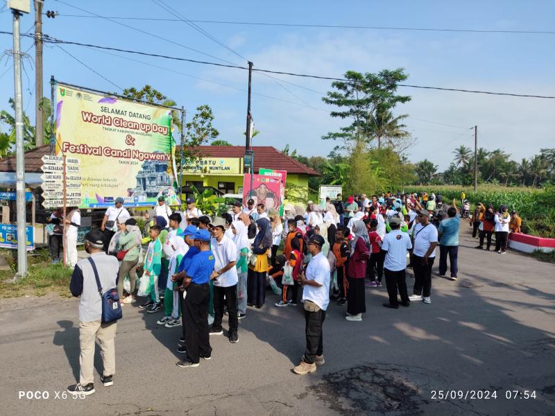 Kemudian pada puncak acara pada tanggal 25 September 2024 dilaksanakan Gerakan Pungut Sampah (GPS), Gerakan Bersih Sungai dalam rangka memperingati hari kebersihan dunia atau World CleanUp Day (WCD) yang pesertanya antara lain : Dinas Lingkungan Hidup Kab. Magelang, Penggiat Lingkungan Kab. Magelang, Sekolah Adiwiata Se Kab. Magelang, Camat dan Kades Se Kecamatan Muntilan, PKK Kab.Magelang, Warga Desa Ngawen dan sekitarnya dan juga dihadiri oleh PJ Bupati Kab. Magelang dan Asisten Ekonomi dan Pembangunan Kab. Magelang.