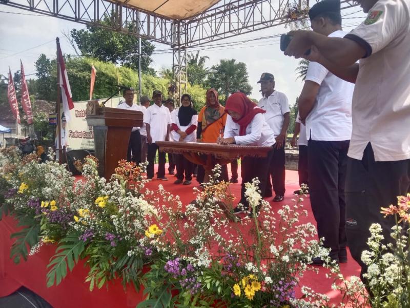 Setelah itu dilakukan pencanangan Kecamatan Muntilan Sebagai Desa Proklim yang ditandatangani oleh Seluruh Kades Se Kecamatan Muntilan.