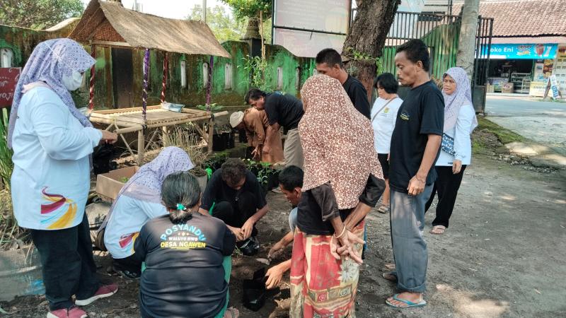 Kegiatan juga diramaikan dengan penanaman TOGA dilingkungan Balai Desa dengan mengikut sertakan Posyandu ODGJ Waluyo Jiwo.